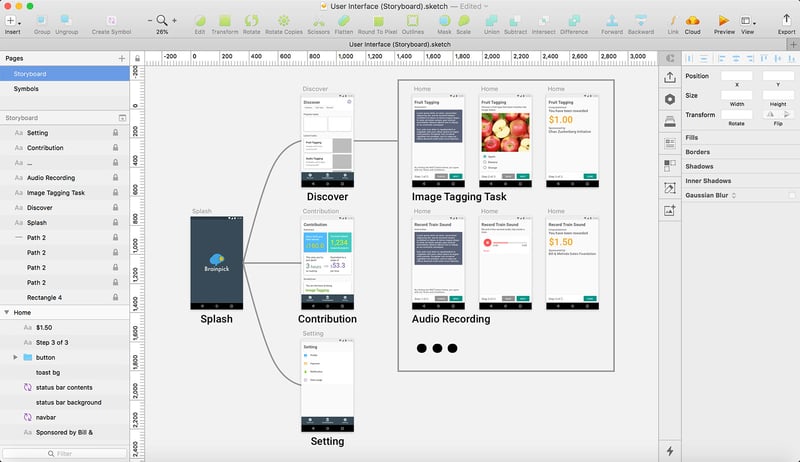 Before coding the user interface, we drafted a storyboard that indicates the basic flow of the app using Sketch. We then asked our friends for feedback and further improved the design. This saved us from repeatedly modifying codes to tweak the design of user interface. A draft of the storyboard is shown below.