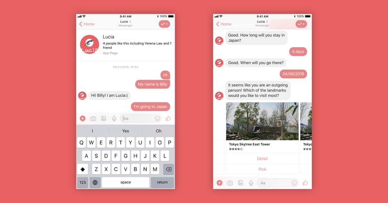 Lucia is a chatbot that assists users before and during their travel. Its functions include flight and hotel booking, itinerary planning, translation, and so on. It helps independent travellers and backpackers to get the most out of their journey.