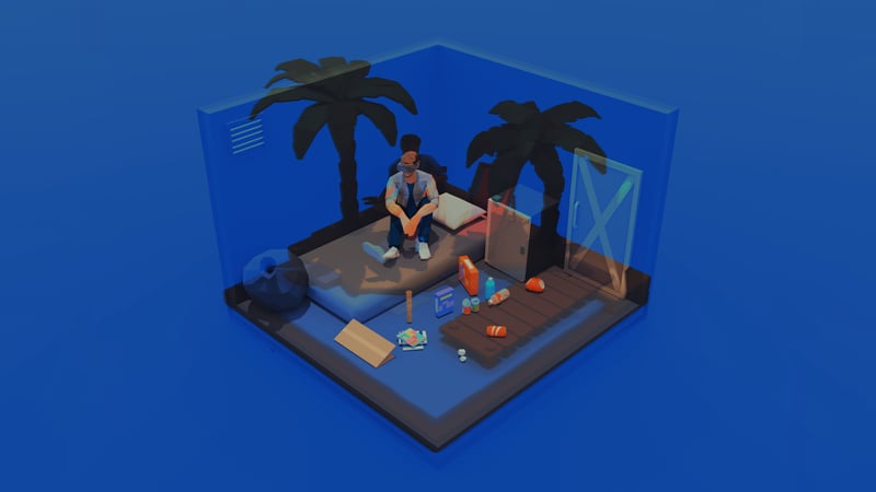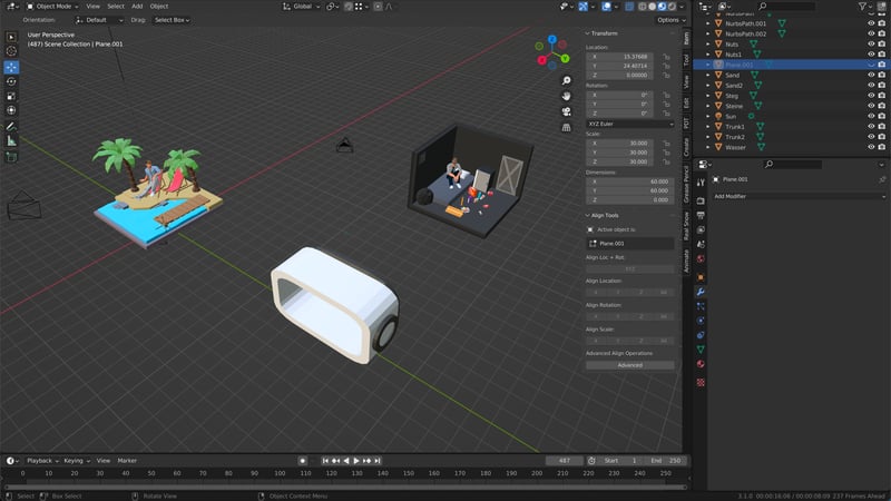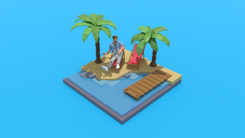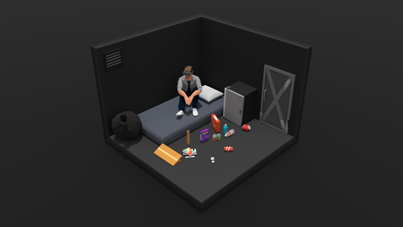 Blender was used as the main modeling tool in this project. Both the "real" room and the XR beach scenes are isometric models created by combining various online and self-made assets. The XR headset was also modeled from scratch by myself. The result was exported from Blender into Unity as an FBX file. In Unity, the model is unpacked, and the individual materials are extracted so that they can be modified in Unity and fine-tuned specifically for the Universal Rendering Pipeline.