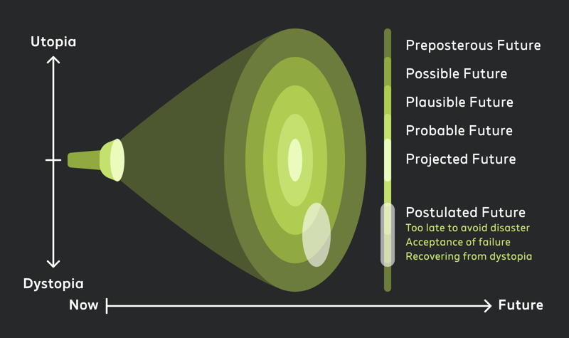 Different from Strategic Foresight in a commercial setting, we did not restrict the chosen future to be positive or constructive in nature. In fact, a somewhat dystopian but not entirely pessimistic future would make the story feel more credible and provocative.