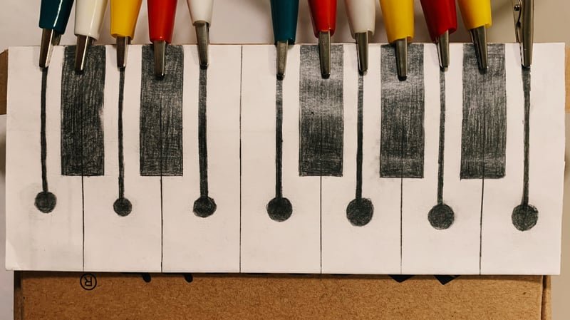 In this project, I hand-drew a paper piano and made it interactive by connecting it to an Arduino circuit.