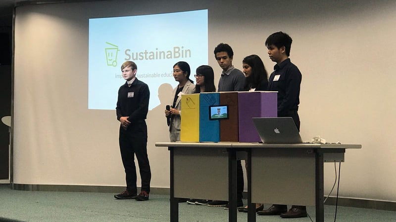 SustainaBin is a recycling bin that helps kindergarten teachers teach kids to protect the global environment. Through the interaction with this gamified recycling bin, kids can gradually form good recycling habits along their education journey.