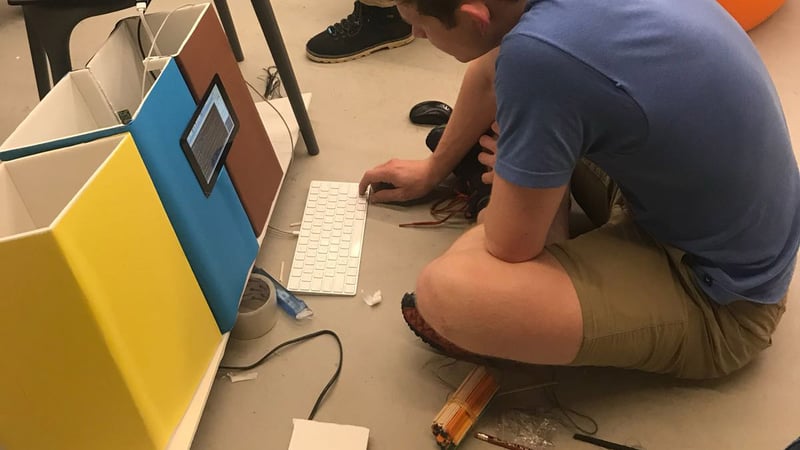 After one week of research, interview and brainstorming, We had only one more week to finish our prototype. We divided the team into 3 sub-teams 'Software and UI Design', 'Hardware and Physical Design', and 'Business and Pitching'. Each member can join up to 2 teams. This ensures a good specialization while providing enough flexibility and cross-team collaboration.